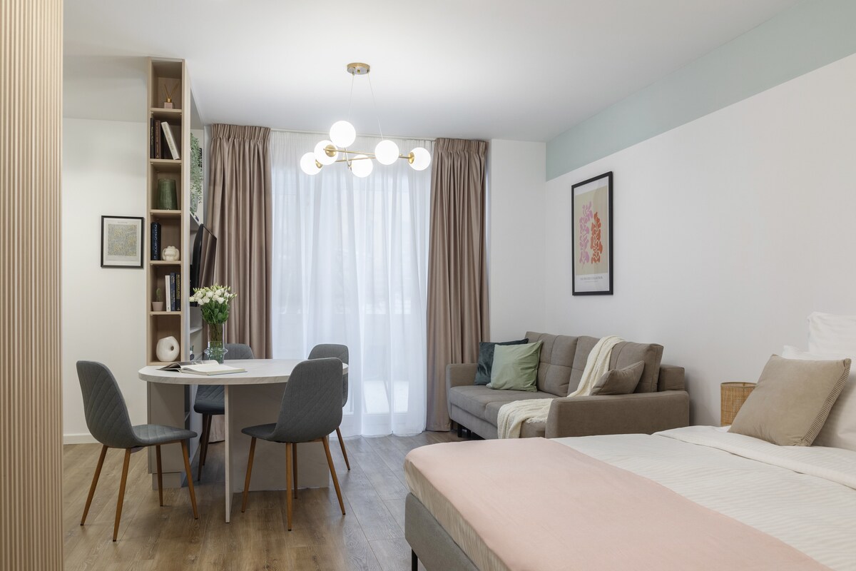 Appartamento 🏡 moderno, perfetto per un massimo di 4 ospiti Camera da letto🛏️ separata + divano letto in soggiorno 🍳 Cucina attrezzata Giardino 🌳 privato con vista mozzafiato 🚗 Parcheggio gratuito. C'è❄️ condizionatore 📶 Wifi veloce 🏊🏼 Area spa - costo aggiuntivo ❤️ Accogliente atmosfera di casa lontano da casa: sempre felice di riaccoglierti! Prenota subito il tuo soggiorno e goditi comfort, privacy e tutti i servizi di cui hai bisogno per un soggiorno indimenticabile. Siamo pronti a rendere il tuo viaggio facile e piacevole: porta solo la tua valigia!