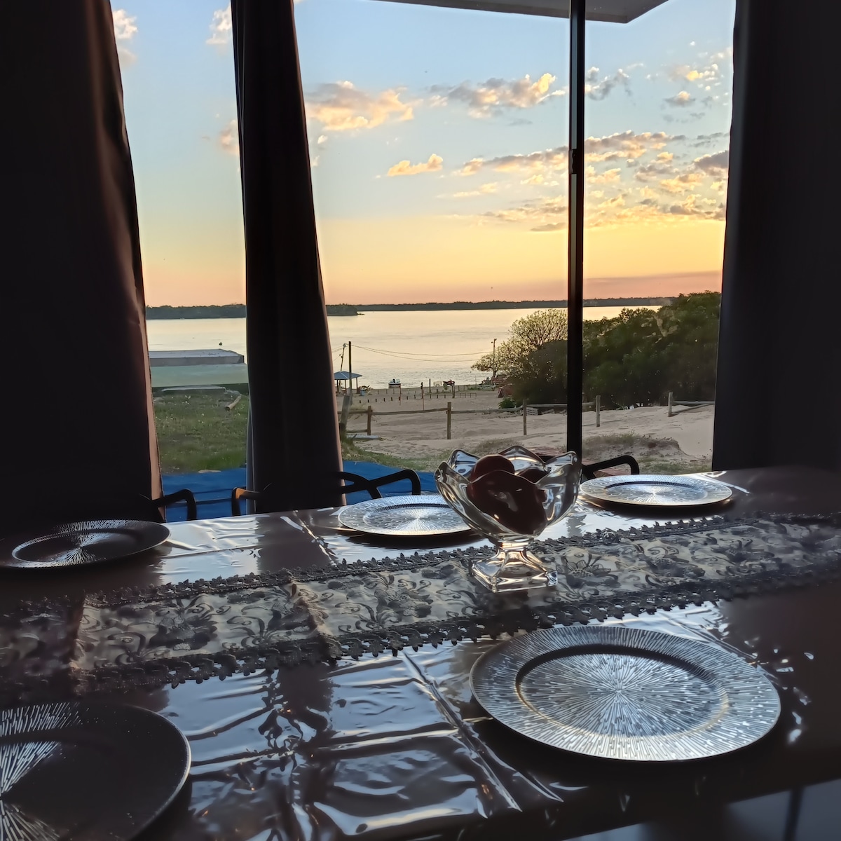 La nostra casa si trova di fronte al Rio Paraná, con una discesa privata, una vista mozzafiato e un'atmosfera serena. Ci troviamo nel Country Rincón Santa María, Ituzaingó, Pcia. de Corrientes, con accesso privato alla spiaggia, discesa in barca, minimarket e sicurezza 24 ore su 24.