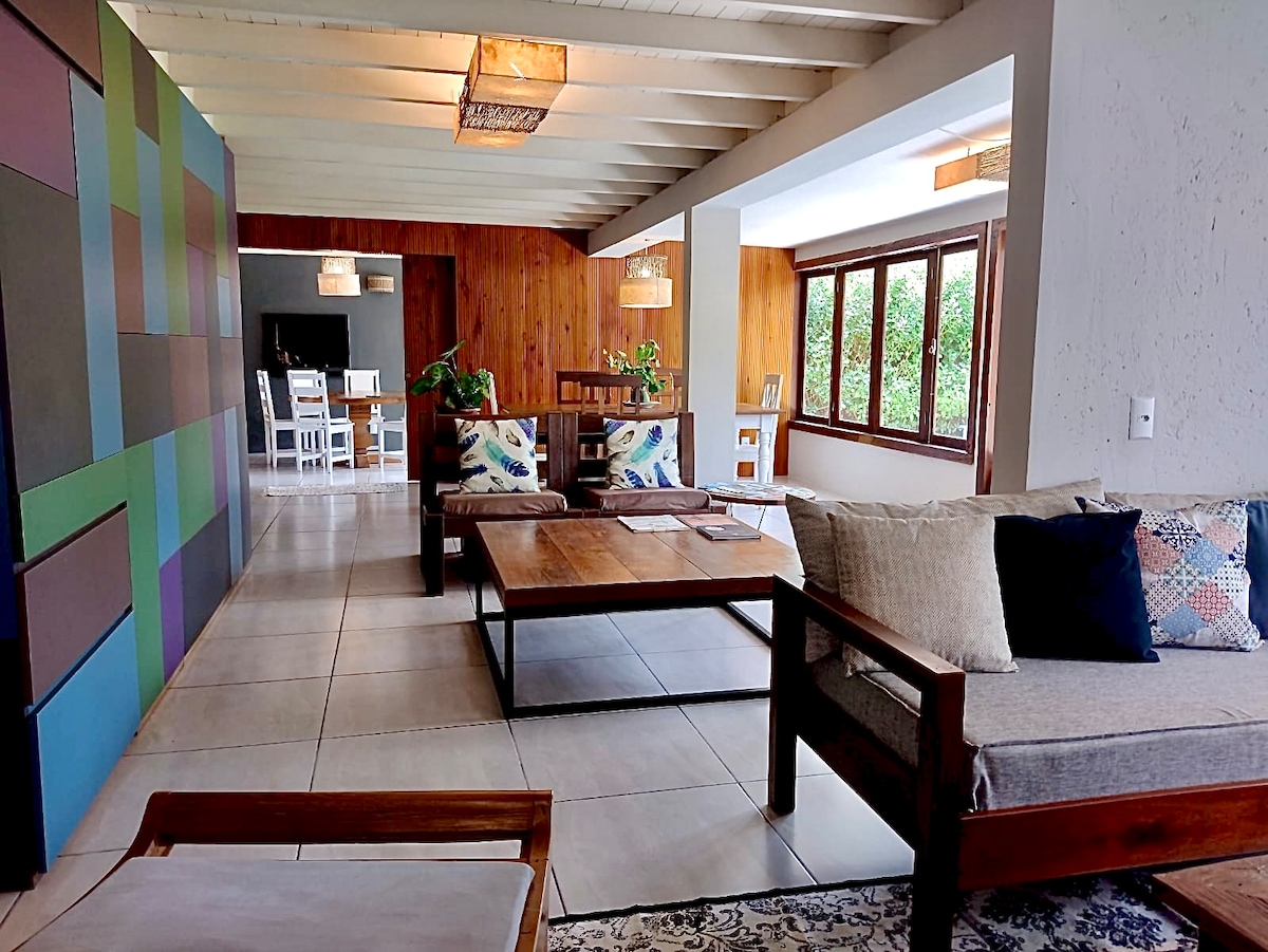 Casa da Janela Azul è la vacanza perfetta per chi cerca tranquillità e connessione con la natura. Con un aspetto mozzafiato della laguna di Ibiraquera e un'atmosfera accogliente, offriamo giornate di pura tranquillità. La nostra casa è adatta agli animali domestici e dispone di un giardino privato circostante. Siamo a soli 5 minuti di auto dalle paradisíacas Praia do Ouvidor e da Rosa Norte. Situato all'interno del Condomínio Maranata II, di fronte a SURFLAND BRASIL.