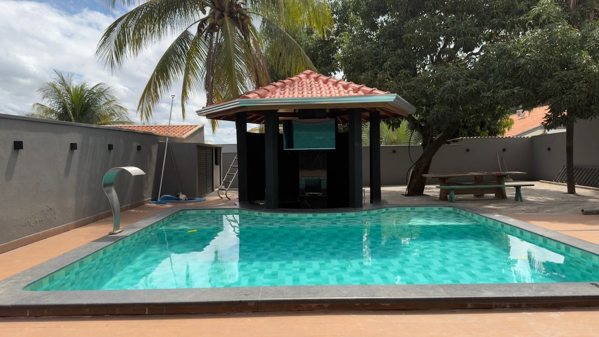 Rancho Novíssimo, a 500 m dal Clube Náutico Fronteira, situato al Condomínio Reserva Rio Grande. - Ospita 14 persone; - Piscina con idromassaggio, led e cascata; - Internet Wi-Fi; - Sky (inclusa Premiere); - 3 camere da letto con aria condizionata; - 3 bagni, due nella zona esterna e uno nella zona interna. - Ampia area ricreativa con barbecue per il divertimento di tutta la famiglia/amici; - Condominio dotato di rampa per l'accesso alle barche.