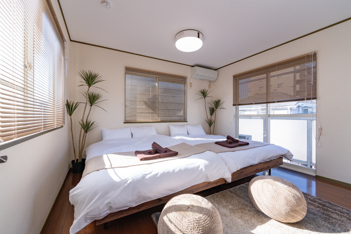A 5 minuti dalla stazione di Makuhari (uscita nord). L'intero primo piano di una casa di nuova costruzione è riservato a un gruppo privato. NEL MAKUHARI DEL SOGGIORNO Apertura febbraio 2026 Un soggiorno spazioso di 64 m². Check-in alle 15:00 / Check-out alle 11:00. Parcheggio gratuito per una macchina. Wi-Fi ad alta velocità. Lavatrice-asciugatrice inclusa. Mobili di design scandinavo in un ambiente raffinato in stile Japandi. Materasso Premium Sealy e vasca da bagno privata all'aperto. Facile accesso agli aeroporti, al Makuhari Messe e al Tokyo Disney Resort.