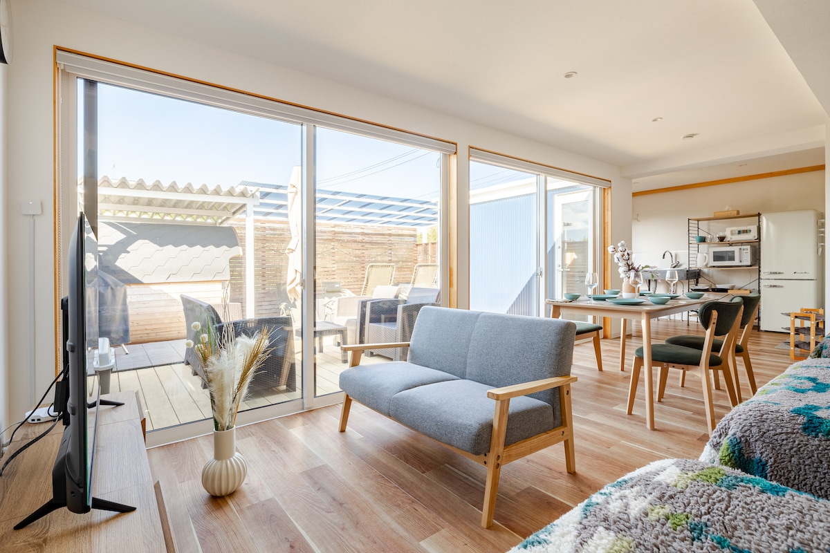 🌊La costa di Higashinami è proprio dietro l'angolo.Relax per adulti e bambini: solo una villa privata al giorno✨ Goditi un soggiorno privato circondato dal suono delle onde. Si tratta di una villa completamente privata con una vera e propria sauna a botte (di solito 100-110 °C a fuoco basso) e un ampio patio in legno con barbecue. Ottimo accesso a luoghi dove fare surf e godere di onde di alto livello, come la costa di Tsigazaki e la costa di Higashinami. È una zona costellata di caffetterie e ristoranti sofisticati che armonizzano la gastronomia con la natura. A fine giornata, puoi guardare le stelle cadenti dalla sauna. Anche il tempo per godersi un film con un proiettore e un bicchiere di vino con gli amici è eccezionale. Ci auguriamo che tu possa trascorrere un periodo piacevole in tranquillità. Possono soggiornare anche ospiti con bambini e animali domestici. * Sauna e barbecue sono disponibili a pagamento * L'accesso in auto è comodo.  * A causa della posizione circondata dalla natura, potrebbero esserci insetti a seconda della stagione e del tempo. Se non ti piace, ti preghiamo di tenerne conto in anticipo e di effettuare una prenotazione.