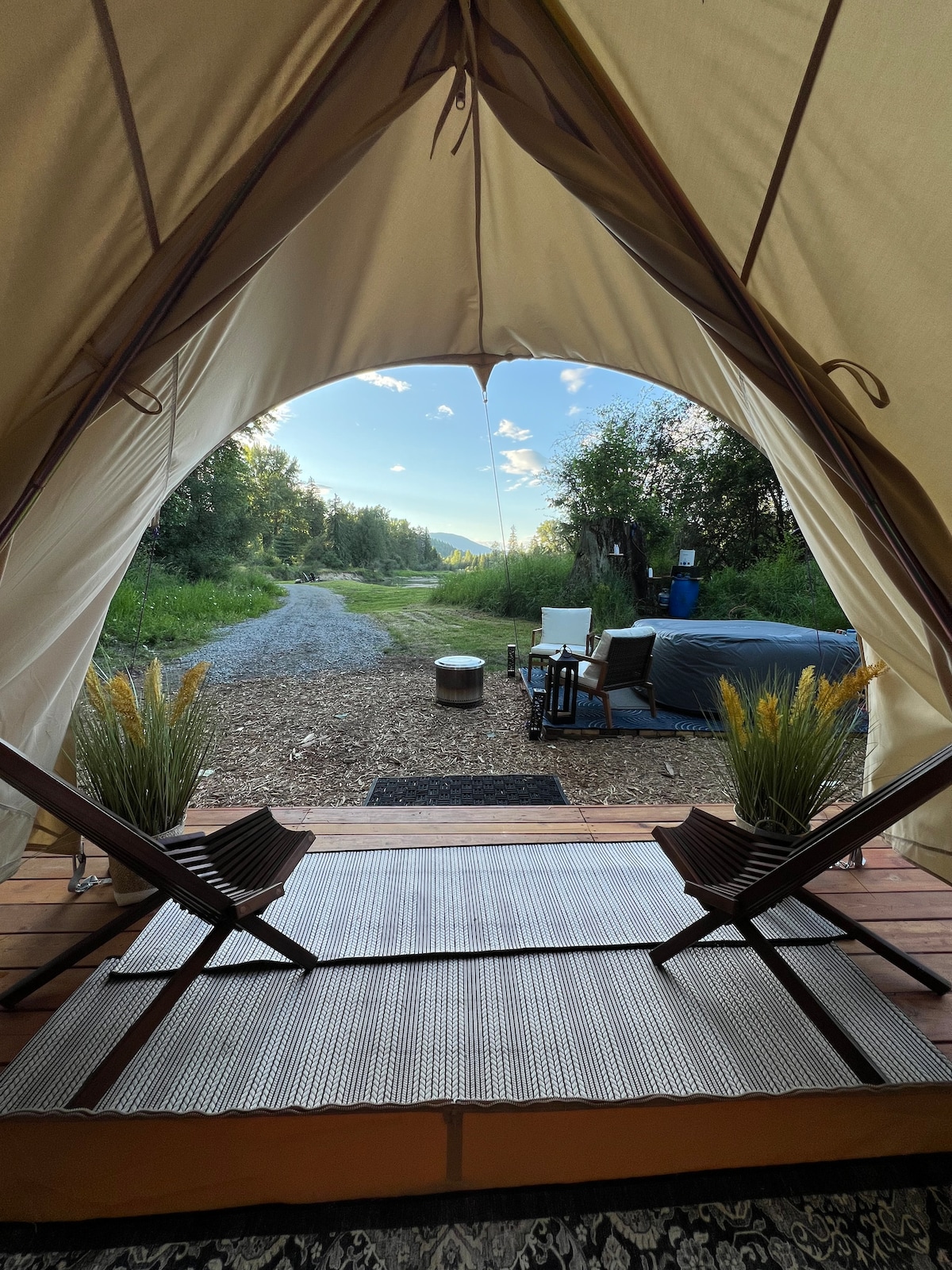 Concediti una lussuosa vacanza in glamping nell'Idaho settentrionale! Immagina di svegliarti in una spaziosa tenda a campana in tela, situata lungo il pittoresco fiume Pack. La vegetazione lussureggiante e il dolce mormorio del fiume creano un'oasi privata per due. Rilassati sul morbido letto matrimoniale o sulla terrazza privata, entrambi con vista mozzafiato sul fiume. Ammira le stelle di notte e riconnettiti con la natura in tutta comodità. Questa fuga romantica ti aspetta! La splendida cornice di questo luogo romantico immerso nella natura ti lascerà a bocca aperta.