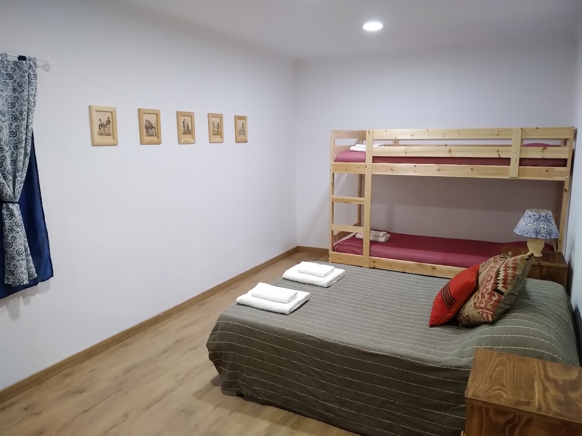 Una camera da letto tra le tante al Quinta, questa si trova al primo piano della casa principale e può ospitare 3 persone. Dispone di un letto matrimoniale e di un letto singolo con accesso a uno dei due bagni in comune. Vicino alla Quinta ci sono varie attrazioni della regione. O semplicemente soggiorna in un parco tranquillo che ha ampio spazio per passeggiare, divertirsi e rilassarsi.