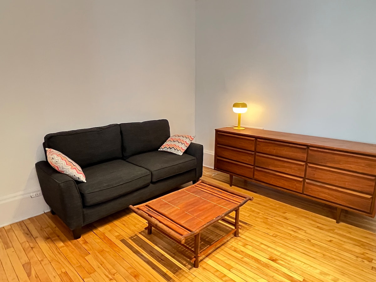 Situato in un'area tranquilla e sicura in una vecchia casa in una splendida strada di Montreal. Very clean. Ideale per coppie, solos or business travellers. Includes living room, bedroom, angolo cottura e bathroom. Netflix available Private parking Situata in zona tranquilla e sicura in una casa d'epoca con timbro. Molto pulito. Ideale per coppie, persone sole o chi viaggia per lavoro. Monolocale con soggiorno, camera da letto, angolo cottura e bagno Accesso a Netflix Parcheggio Privato