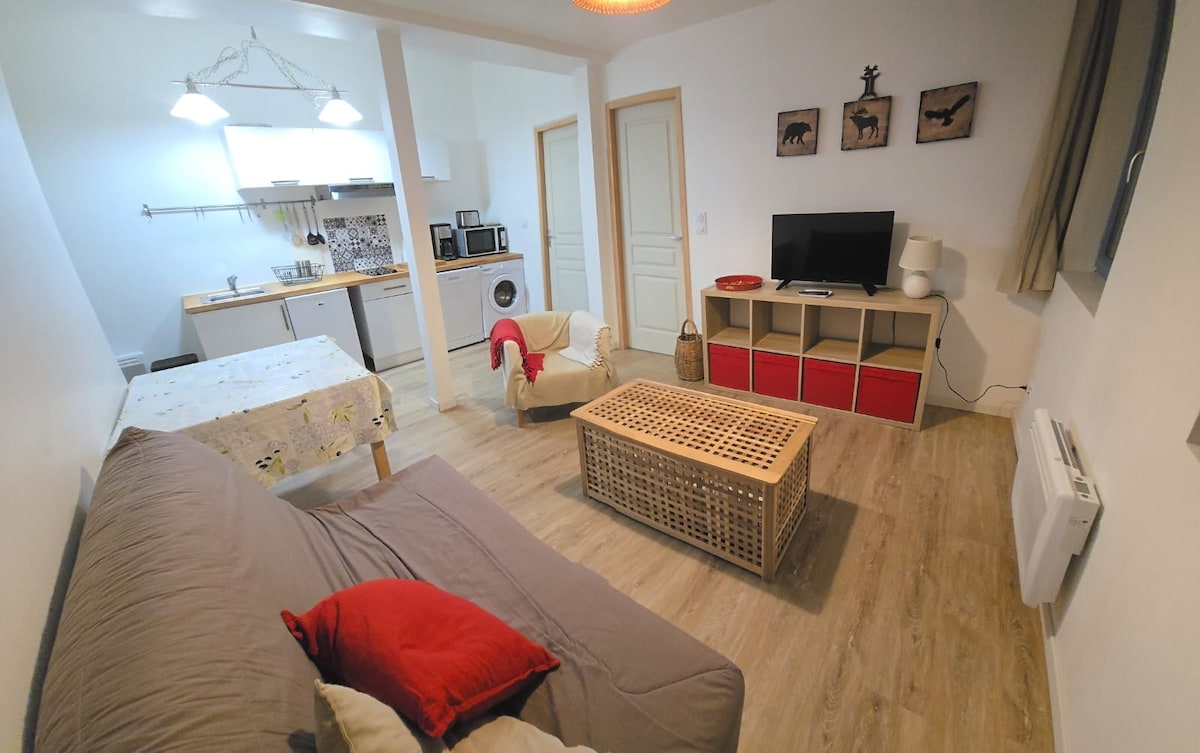 Monolocale situato al 1° piano in una piccola residenza in una strada tranquilla a 200 m dalle funivie e dalle terme, è completamente ristrutturato . È dotato di un letto fisso in 140, frigo-congelatore, forno, microonde, macchina per il caffè, bollitore, tostapane e tutte le stoviglie necessarie. Tutte le attrezzature sono nuove. Porti semplicemente le lenzuola e il bagno e ti siedi, per cucinare, dormire e guardare la TV sulle poltrone messe a disposizione anche. Classificato 2*