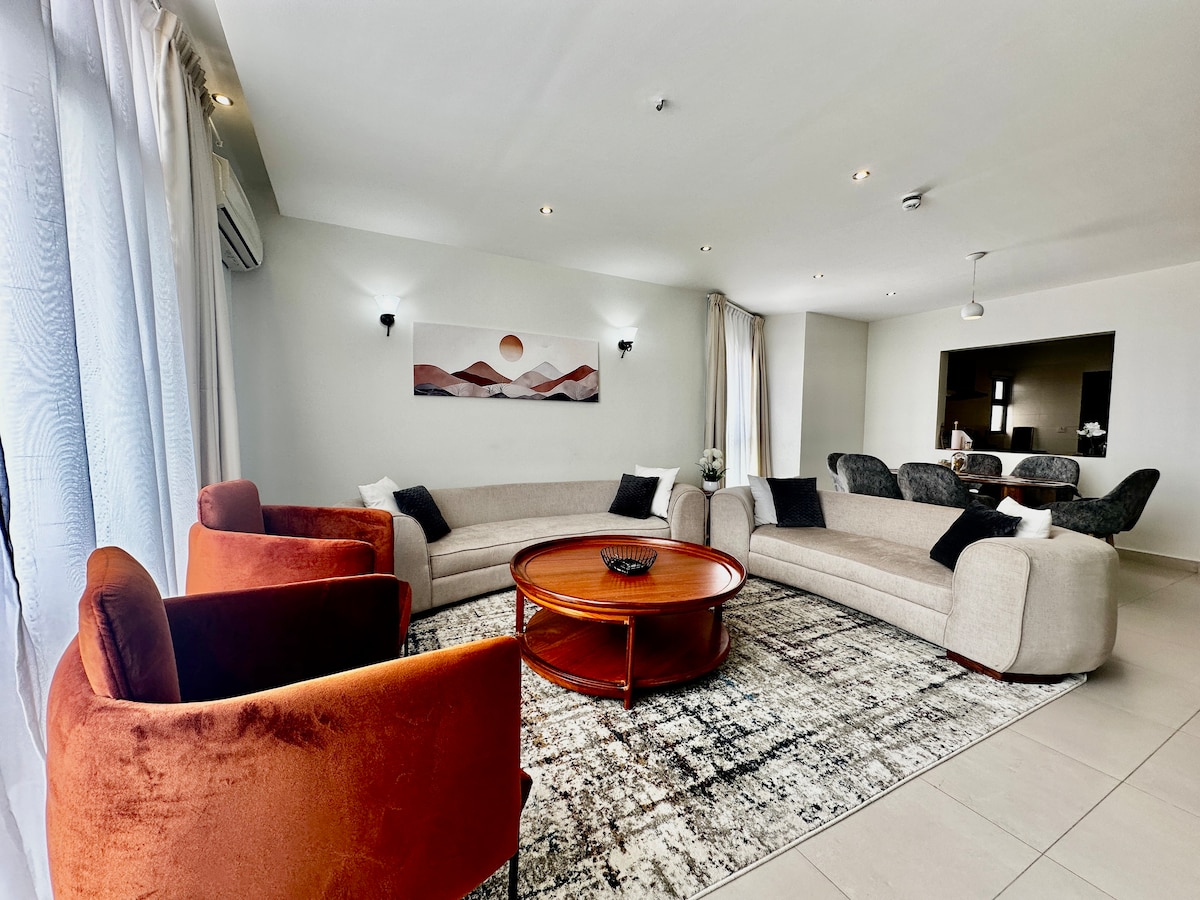 Ti diamo il benvenuto al Royal Stay, un moderno appartamento executive con 3 camere da letto situato nel cuore della città. Progettato per il comfort, la comodità e la classe, questo spazio è perfetto per chi viaggia per lavoro, per le famiglie e per soggiorni premium brevi o lunghi. Goditi camere spaziose con aria condizionata, Wi-Fi ad alta velocità e interni eleganti che ti offrono una vera esperienza di lusso. Con un balcone privato per godersi l'atmosfera della città, o rilassarsi al chiuso in uno spazio pulito e curato professionalmente, costruito per il comfort.