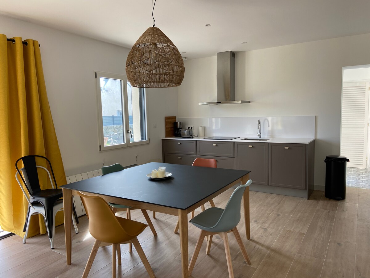 Semplificatevi la vita in questo alloggio tranquillo e centrale. Casa ristrutturata in stile Cicladi come un bozzolo luminoso. Ampio soggiorno di 30 m2 con salone soggiorno cucina che si affaccia su una terrazza per pasti al sole. Una stufa completa questa stanza per riscaldare i pochi giorni di pioggia che non durano mai. Al piano superiore una piccola scala conduce a 2 camere da letto con al centro un bagno con doccia. 1 camera matrimoniale letto 160x200 1 camera per bambini 2 letti di 90x200. La serenità..