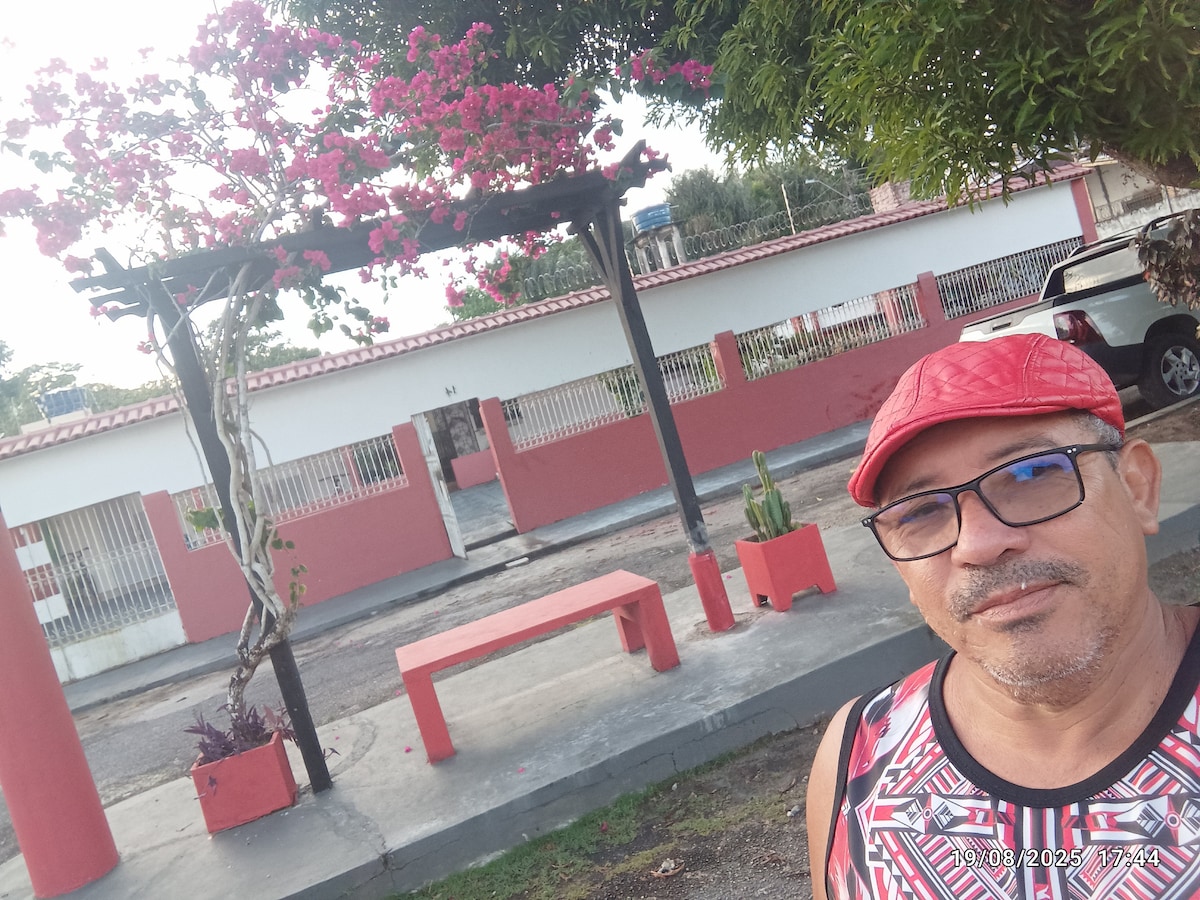 Experiência relaxante com toda a família nesta acomodação super agradável Suite: 1 cama de casal e uma de solteiro, com split e banheiro. Quarto 1: 1 cama de casal e 1 cama auxiliar de solteiro, com split Quarto 2: 1 cama de casal e 1 cama de solteiro, com ar-condicionado Armadores de rede nos quartos, varanda e sala 4 ventiladores Poço artesiano, água filtrada. Internet wi-fi TV na sala com Netflix, prime vídeo, Max, Disney e Mub. Piscina, churrasqueira e área verde. Portão elétrico.
