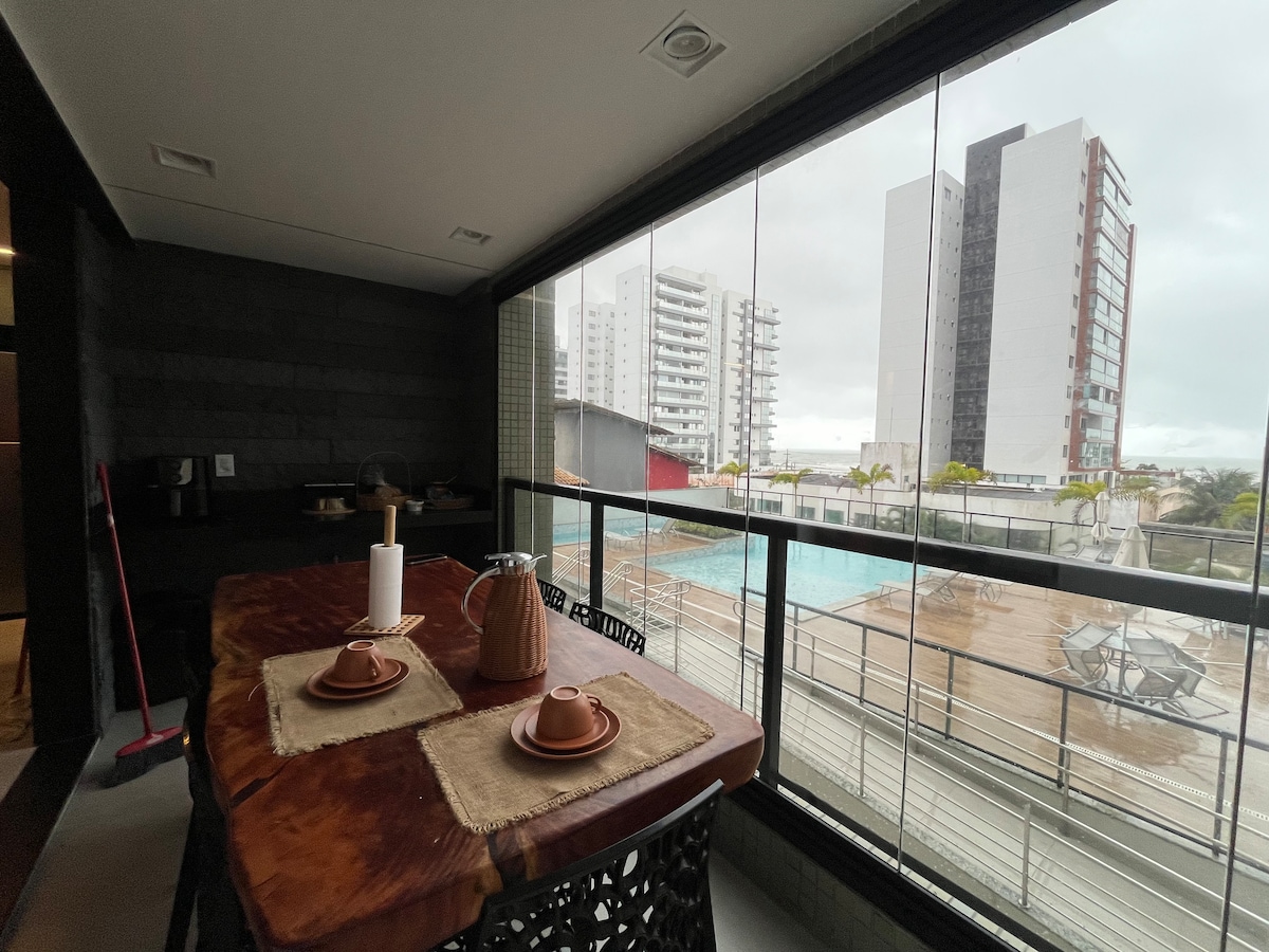 Situato di fronte alla spiaggia, vicino a SmartFit, Atacarejo, nonché a caffè e ristoranti. Dispone di una suite con letto matrimoniale "queen size", un'altra camera con due letti singoli, entrambe con aria condizionata split, pay tv, "Wi-Fi", cucina, zona di servizio e balcone, con vista mare su tutte le camere. Dispone di sicurezza elettronica, ascensore panoramico, due garage per auto di medie dimensioni, spazio per bambini, sala giochi, spazio gourmet, centro fitness, sauna e piscina.