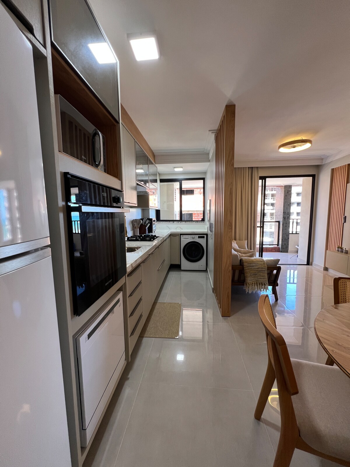 Appartamento a 150 metri da Praia dos Milionários (zona sud), zona privilegiata della città. INFORMAZIONI SULL'ALLOGGIO: - 3 ° piano - 100% Mobiliado - 2 camere da letto climatizzate (può ospitare fino a 5 persone) - 2 bagni - Stanza - Cucina - Area di servizio - Balcone (con rete di sicurezza) - Garage IN EVIDENZA: - Accesso con serratura elettronica (dispensazione di chiavi fisiche) - Wi-Fi ad alta velocità - Smart TV 32" - Utensili da cucina - Vestiti da letto e da bagno Ti diamo il benvenuto nel nostro alloggio! @brisasdeilheus