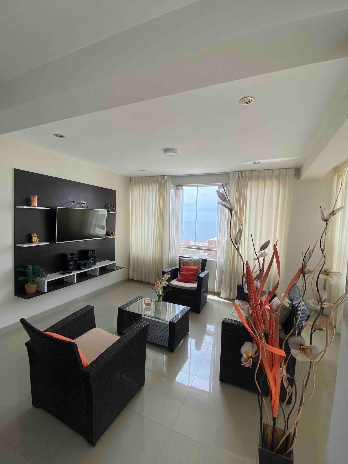 Rilassati con tutta la famiglia in questo posto tranquillo dove soggiornare. Siamo a pochi isolati dal mercato, dalla stazione di polizia e dalla banca BCP. Anche a 5 minuti dal lungomare, dalla piazza, dalla spiaggia, dalle discoteche e dai ristoranti. Abbiamo l'appartamento completamente arredato *Cucina: frigorifero, forno a microonde, cucina, frullatore, cuociriso, ecc. *Soggiorno: set da pranzo, mobili da soggiorno, ventilatore, centro di intrattenimento. Bagno: acqua calda, carta, sapone, asciugamani C'è il wifi
