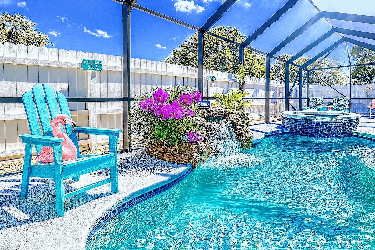 Benvenuto... al Contemporary Cove, PATIO POSTERIORE COMPLETAMENTE SCHERMATO per proteggerti dagli insetti della Florida. Entra nel lusso con questa splendida oasi contemporanea, progettata per fondere eleganza moderna e tranquillità serena, facendoti sentire a casa. Immersa in un quartiere pittoresco, questa casa offre il rifugio perfetto per chi cerca stile, comfort e relax. Piscina ResortStyle: scintillante fulcro circondato da un patio di grandi dimensioni, area lounge all'aperto e focolare, perfetto per serate divertenti o tranquille.