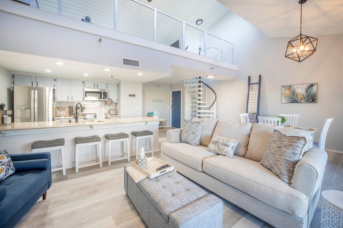 A freshly remodeled beachfront condo with a coastal look. This stunning condo features modern coastal decor, with bright colors, beach-inspired accents, and panoramic views of the ocean. This wonderful condo has a private balcony allowing for the enjoyment of the sea breeze and stunning sunsets. The central location between Clearwater and St. Pete provides easy access to nearby restaurants, shops, and entertainment options, making it the perfect beachfront retreat for relaxation and leisure.