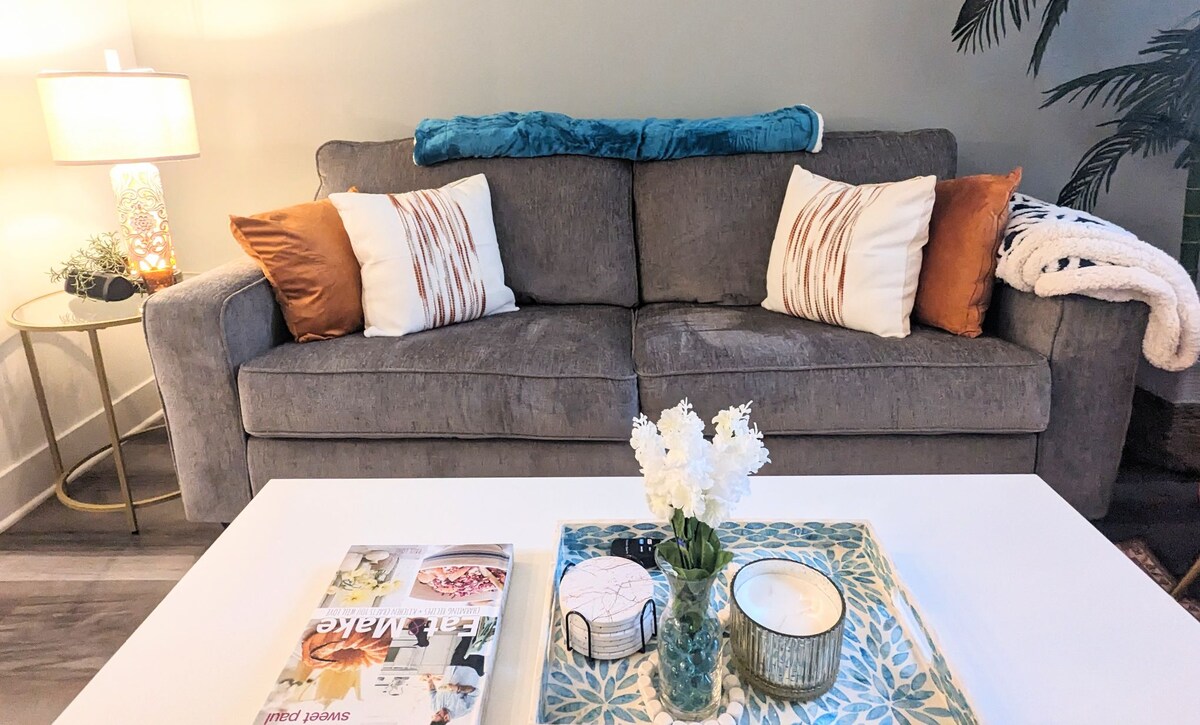 Parcheggio ⭐ gratuito A pochi⭐ isolati da Massachusetts Avenue e dal centro di Indianapolis Check-in ⭐anticipato/check-out posticipato a 25 $ ⭐ Spaziosa ed elegante, in stile suite ✦A pochi passi/breve distanza in auto dalle principali attrazioni ✤ Pulito! Host con✤ ottime valutazioni/siamo del posto! Sentiero ➠ culturale/Di livello mondiale Camera da letto🛌 privata/ letto matrimoniale grande 🛋 Divano letto a due piazze Disposizione ⭐in stile suite: accogliente ma spaziosa Macchina da caffè◉ Keurig Piastra con◉ due fuochi/forno tostapane Porta sul➠ retro, chiusa a chiave/non utilizzabile dagli ospiti Porta del➠ seminterrato chiusa a chiave/nessun accesso dalla strada