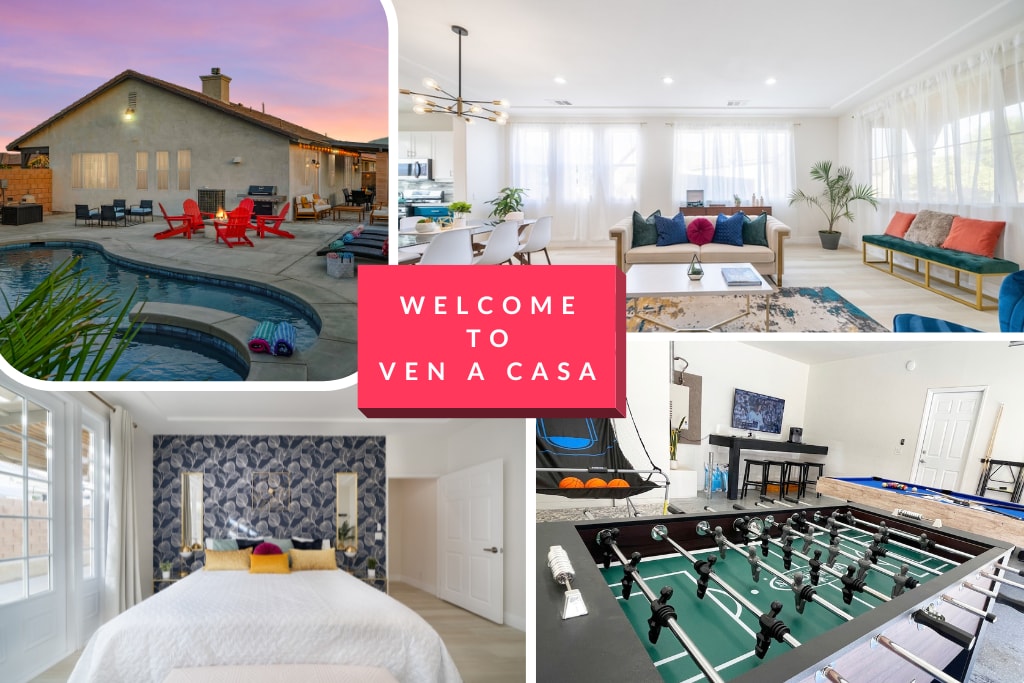 Ti diamo il benvenuto nel nostro splendido rifugio a 5 stelle a Indio! La nostra casa dal design accattivante è perfetta per famiglie, feste e vacanze di gruppo. → Tuffati nel divertimento: sguazza nel NUOVO doppio scivolo d'acqua e nella piscina per bambini. → Game on: sfida i tuoi amici a giochi arcade e divertiti con il tavolo da biliardo. Delizie → culinarie: la nostra cucina gourmet è pronta per i tuoi piatti magistrali. Comfort → Casita: rifugiati nella tua oasi privata. Prenota subito e goditi la vacanza perfetta!