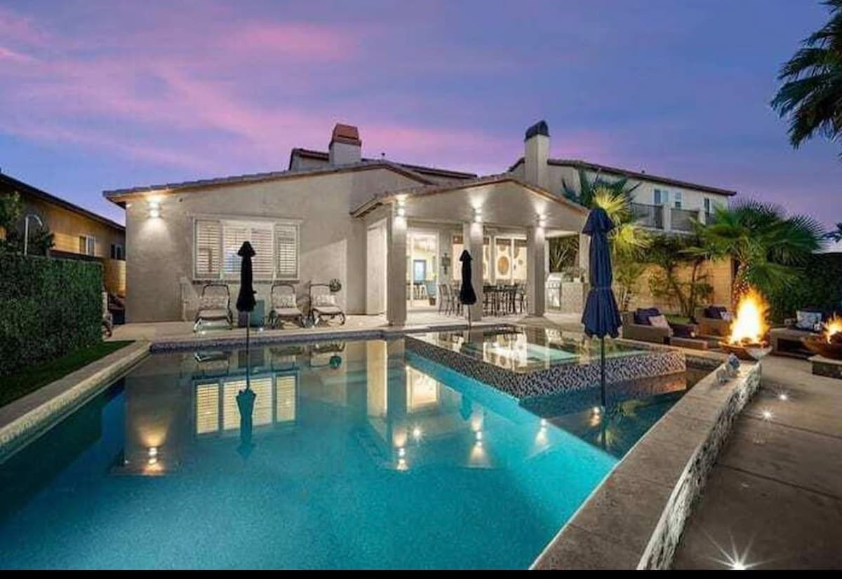 Ti diamo il benvenuto a Desert Social, la tua oasi di vacanza per eccellenza! Perfetto per gruppi di tutte le dimensioni, questo elegante rifugio sul lago offre lusso, divertimento senza fine e facile accesso a festival, negozi, ristoranti e Palm Springs. Dotato di una splendida area esterna, piscina con acqua salata, spa, sauna, sala giochi, mini-golf, giocattoli, home theater e altro ancora, offre divertimento per tutti. Escursioni a piedi: 3 minuti in auto Negozio di alimentari - 5-10 minuti in auto Campi da golf - 2-7 minuti in auto Migliora il tuo soggiorno con divertimento ed eleganza; i dettagli sono riportati di seguito