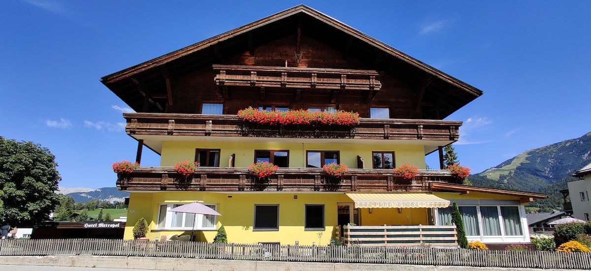 L'Hotel Metropol * ** di Seefeld è una struttura affascinante, piccola e gestita con cura, con camere d'hotel e appartamenti. In inverno, Seefeld offre tre aree sciistiche nelle vicinanze, così come la più grande area sciistica di fondo delle Alpi. Ogni cosa è facilmente accessibile a piedi o tramite lo skibus gratuito. La fermata dell'autobus Metropol (bus regionale) è comodamente situata proprio di fronte al nostro hotel.