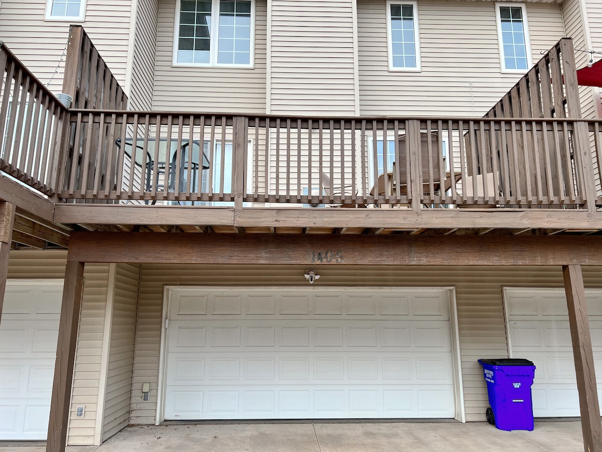 Spaziosa casa a schiera a 3 livelli sul lato SW di Iowa City vicino all'interstatale con facile accesso all'ospedale UI e al campus sul lato ovest. 2 garage e lavanderia collegati all'auto al livello inferiore. Soggiorno e cucina con 1/2 bagno al piano medio e 2 camere da letto con 2 bagni completi al piano superiore. Oltre 2.000 metri quadrati di zona giorno con un sacco di spazio per famiglie o gruppi che viaggiano insieme.