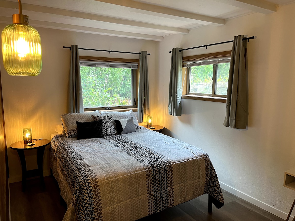 L'esperienza della minicasa. Cucina, soggiorno, armadi, bagno e camera da letto mansardata sono tutti magistralmente nascosti in 232 piedi quadrati. Attraente spazio nel cortile, completo di illuminazione da bistrot e di una vasca idromassaggio stagionale minimalista (senza prodotti chimici né getti. Acqua calda a richiesta). A pochi minuti da zone commerciali, dal centro e da ottimi ristoranti. È a solo mezzo isolato da un negozio di alimentari locale. A nove minuti da Newbo. I padroni di casa saranno a disposizione per aiutarti ad abituarti a questa esperienza divertente.