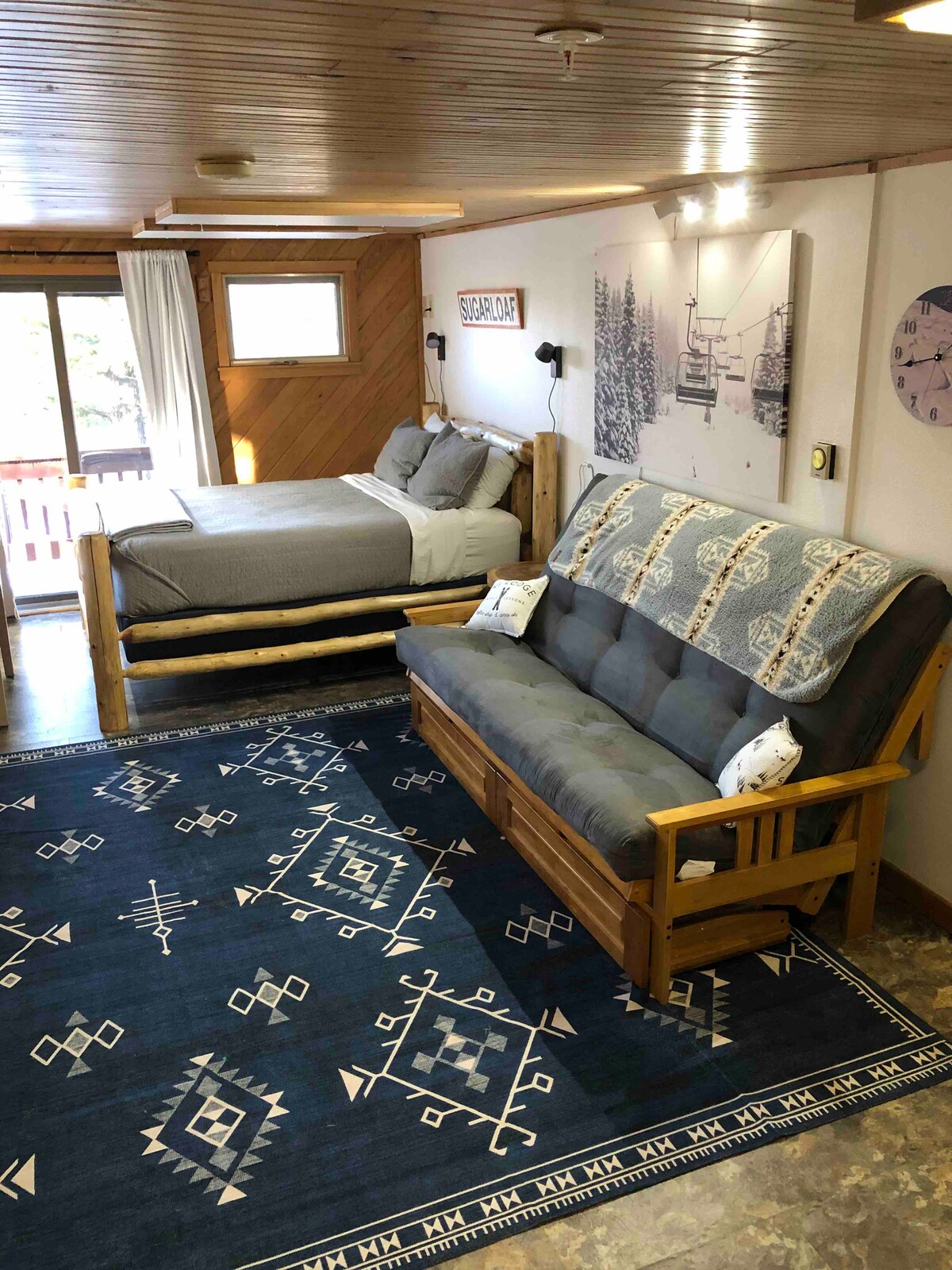 Questo accogliente e confortevole appartamento per sciare si trova in una posizione desiderabile e si trova a breve distanza in seggiovia dalla base del Pan di Zucchero. Sci o mountain bike direttamente dal condominio! Adatto alle famiglie. Un letto matrimoniale inserito in un'alcova, un letto matrimoniale a scomparsa e un divano letto estraibile offrono molto spazio per dormire. Comodo accesso interno alla piscina, alle vasche idromassaggio e alla sauna del Sugarloaf Sports and Fitness Center (si applicano costi aggiuntivi). Cucina completa, e uno dei pochi con aria condizionata per l'estate!