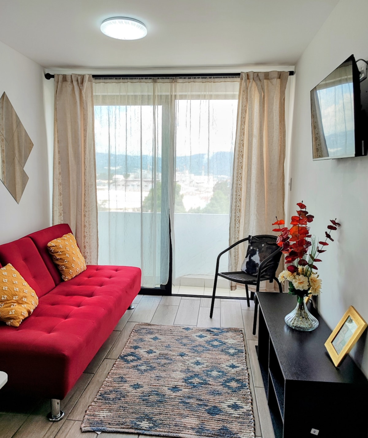Disfruta de este encantador apartamento pequeño tipo estudio con aire acondicionado y vistas impresionantes al volcán de Agua desde el balcón. Ubicado estratégicamente en el corazón del distrito comercial y empresarial de Guatemala, a solo 15 minutos del aeropuerto. Este apartamento te ofrece una experiencia única, rodeado de una amplia variedad de restaurantes, bares y centros comerciales para que disfrutes al máximo tu estadía.