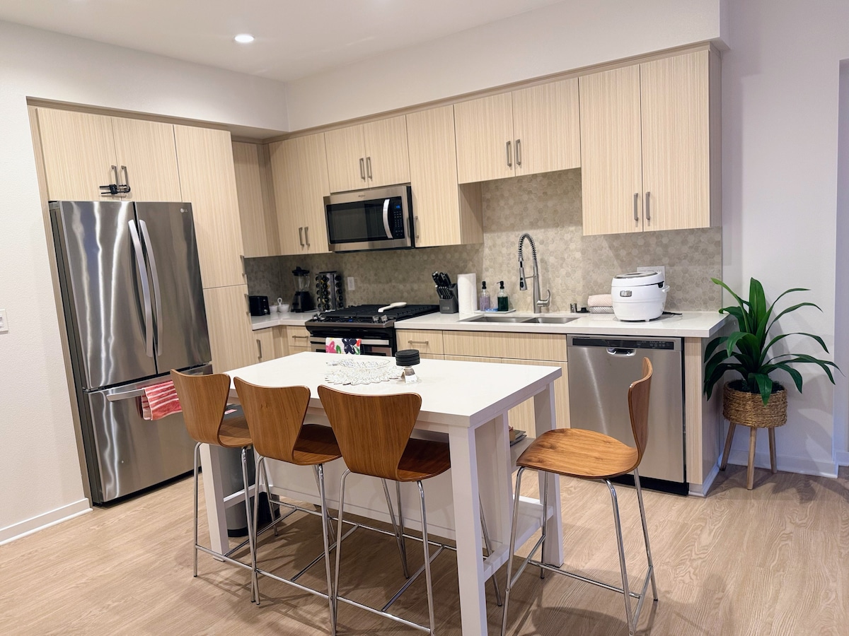 Elegante appartamento privato, perfetto per famiglie di 4 persone, con letto matrimoniale, comodo materasso ad aria, cucina completa con forno doppio GE, piano cottura a 5 fuochi, pentole, padelle, tavolo da pranzo, comodo divano e TV da 54". Piscina all'aperto in comune. Manteniamo l'appartamento immacolato e lo disinfettiamo dopo ogni soggiorno. Lavatrice a carica frontale e asciugatrice in loco. Stoviglie, posate, caffè, tè e acqua in bottiglia. Ogni biancheria da letto e da bagno è appena stata lavata con detersivo anallergico, bicarbonato di sodio e aceto