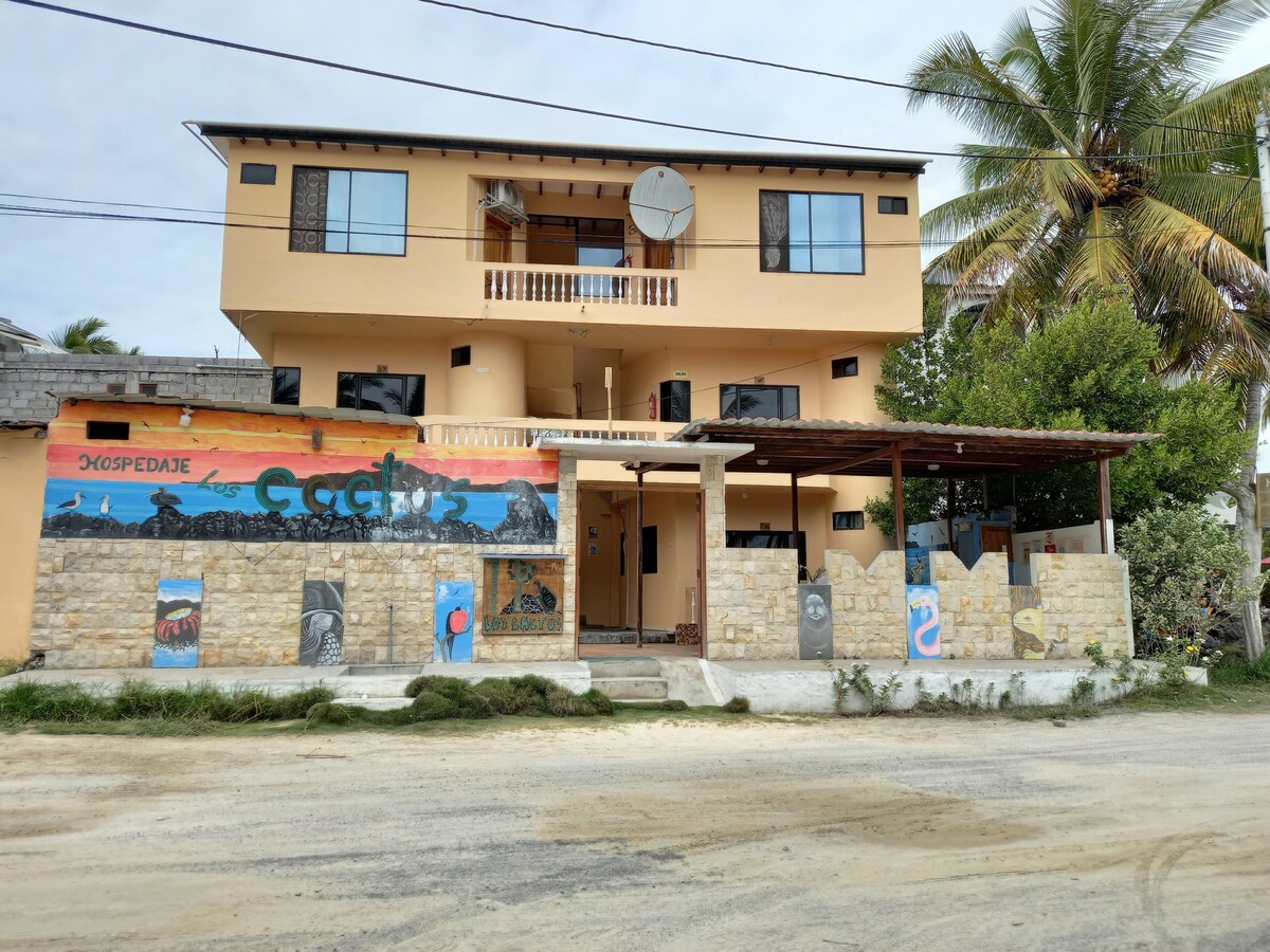 Disfruta de una estancia cómoda y relajante en esta hermosa habitación privada dentro de nuestro hogar. - Habitación: amplia, privada, iluminada, agua caliente, con baño privado, wifi-Starlink, aire acondicionado. -Áreas comunes: cocina, patio, área de hamacas, terraza. -Ubicación: Jeniffer Hostal, ubicado en Isabela Galápagos, Ecuador. En el centro de la población de Puerto Villamil, a cinco minutos de la playa y cerca de restaurantes, cafeterías, operadoras turísticas, entre otros.