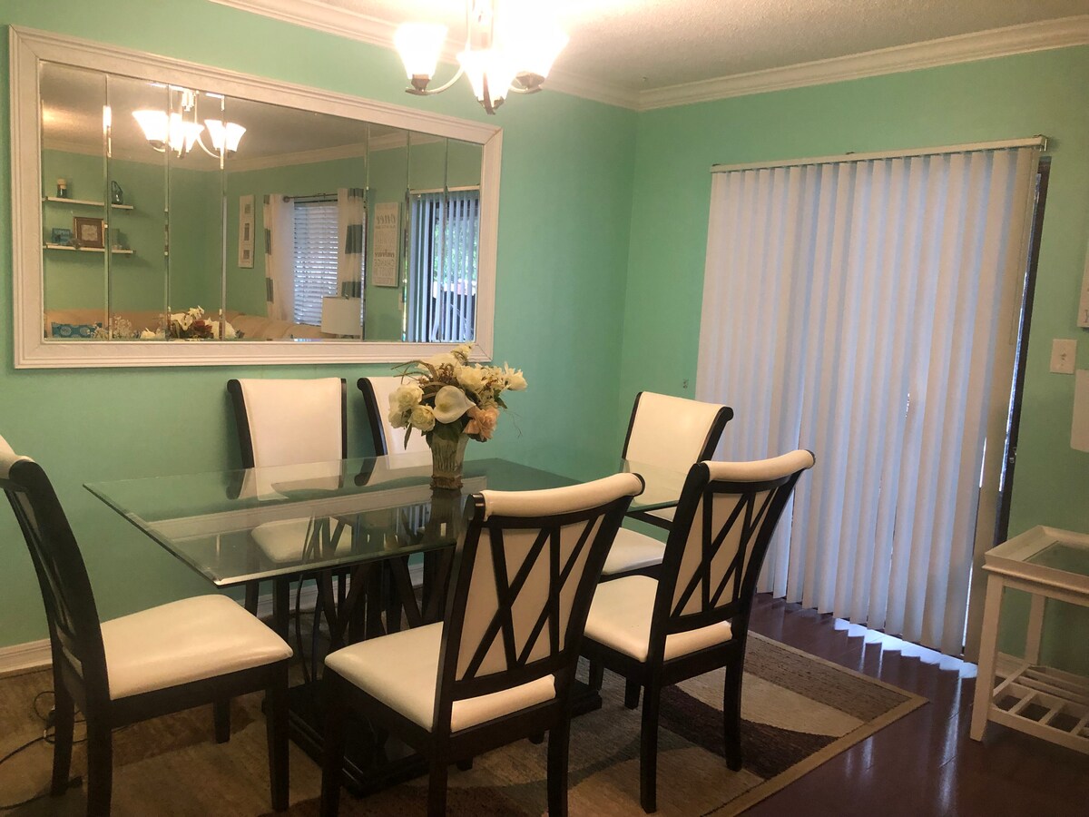 Gli affittuari mensili sono i benvenuti. Questo accogliente rifugio è il luogo perfetto per riposare i piedi dopo una giornata di avventure attraverso le attrazioni di Orlando. Situato di fronte all'Universal, puoi raggiungere a piedi i cancelli del parco in 15 minuti. Uno staff di pulizia professionale garantisce che l'alloggio sia pulito e pronto al tuo arrivo. Il nostro spazio moderno, recentemente ristrutturato, ha tutto il necessario per un weekend fuori porta o un'escursione di un mese.