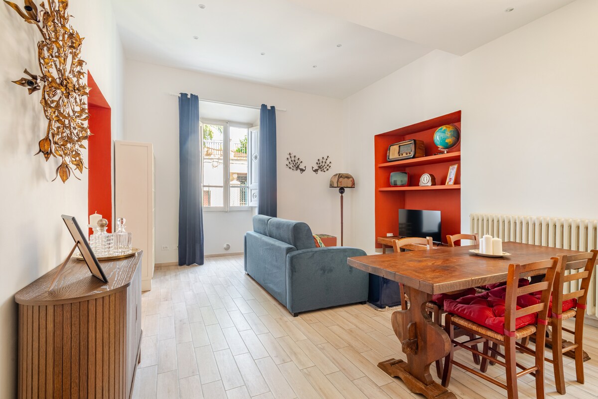 Luminoso bilocale con una romantica terrazzetta panoramica a livello per godersi la prima colazione al sole, l' aperitivo osservando il volo dei rondoni e la cena sotto le stelle. La casa si trova al secondo piano (senza ascensore) di un palazzo antico con cortile caratteristico nel centro storico in una posizione silenziosa, ma vicino a tutti i servizi. Dispone di una camera da letto, bagno con doccia, salotto con Smart-TV, divano-letto e angolo cucina.