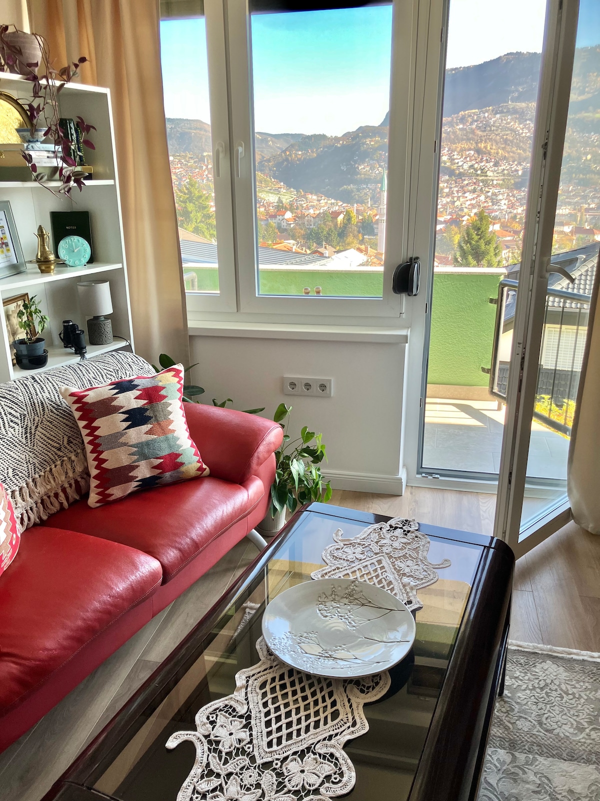 L'appartamento con vista di Omar si trova nel cuore del centro storico di Sarajevo, in una zona molto tranquilla a soli 5 minuti a piedi dalla piazza principale di Bascarsija (Sebilj). L'appartamento è composto da due camere da letto, un soggiorno e una zona pranzo con cucina. Dispone di due bagni. Puoi goderti la vista mozzafiato su Sarajevo da tre terrazze. All'interno della struttura è presente un parcheggio, adatto per due auto, circondato da alte mura, per cui la privacy è garantita.