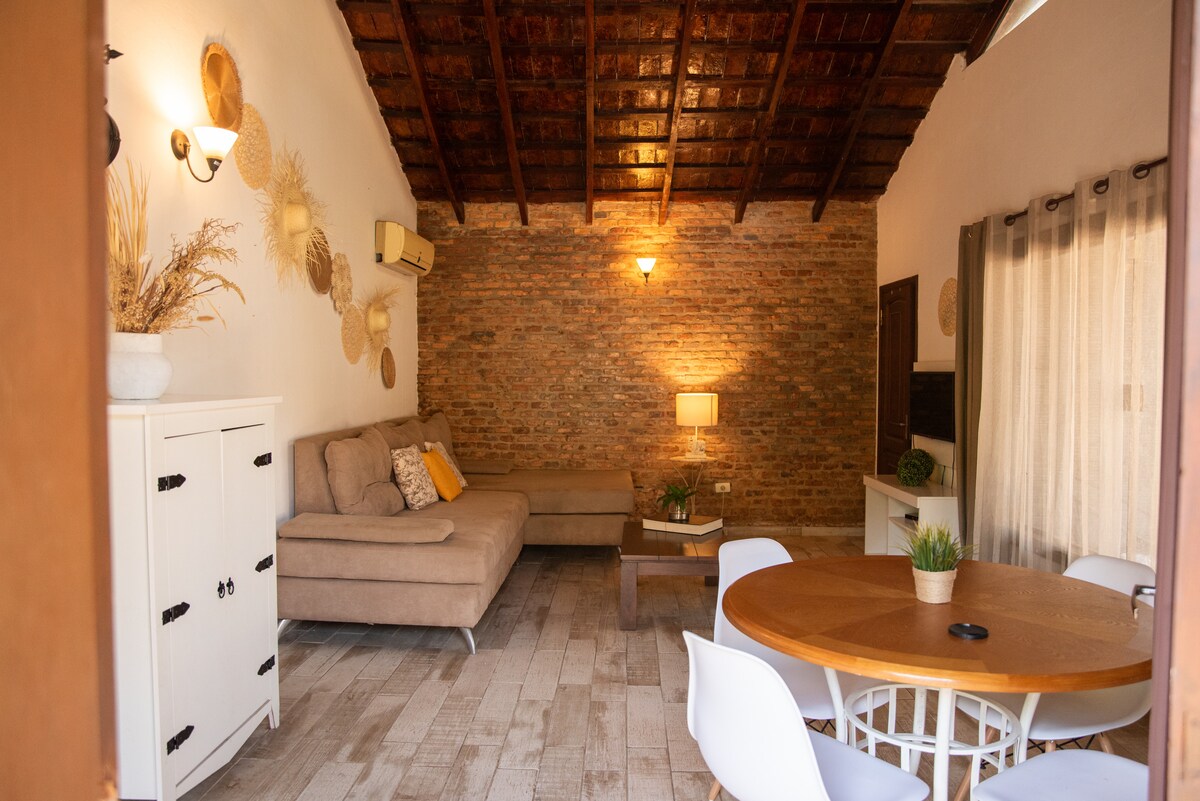 Acogedora suite rodeada de frondosos árboles, pileta y parrilla, ubicada en zona del Anfiteatro a pasos de supermercados, restaurants, bares y lugares turísticos para disfrutar de lo mejor de Sanber! Cuenta con todas las comodidades para descansar, cocinar, trabajar y pasar un buen rato. El lugar nace de la visión de conjugar una vivienda de estilo ecológico con un entorno muy natural, con árboles nativos de gran porte y varias especies de aves que frecuentan el lugar.