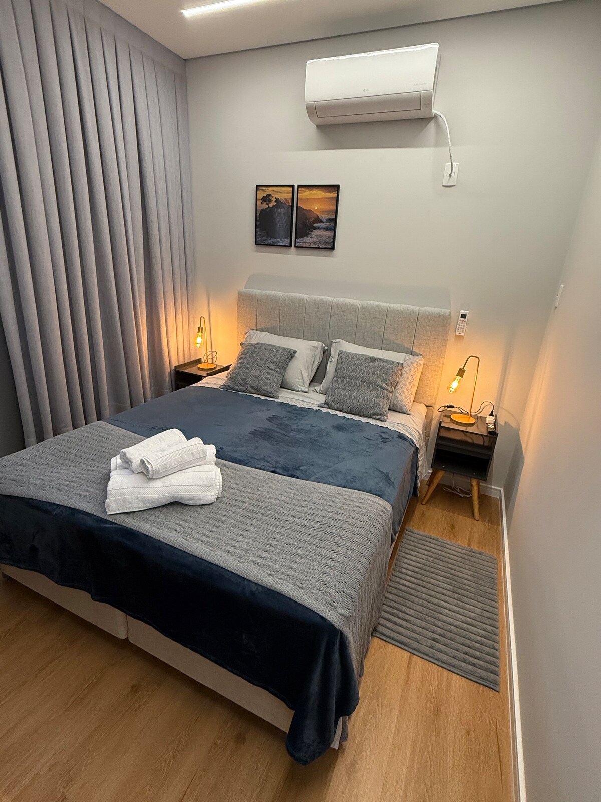 Apê de 65m²: Aria condizionata in soggiorno e nelle camere da letto Cucina completa Spazio home office Smart TV + streaming Wifi ad alta velocità Fino a 5 persone Lenzuola e asciugamani il bagno è in dotazione Il condominio dispone di: Selfie check-in (porte aperte tramite riconoscimento facciale). Appartamento con serratura elettronica con password Alcune distanze: 04km Centro de Eventos Itajaí 10 km Praia Brava de Itajaí 20 km da Greenvalley Questo appartamento è in grado di ricevere saggi fotografici e commerciali