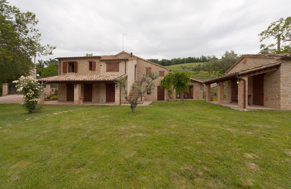 Immersa nelle colline marchigiane vicina borghi medievali la nostra casa, completamente ristrutturata nel rispetto della tradizione, può ospitare 15 persone, con ampio giardino, parcheggio, piscina esterna privata. Vi sentirete a casa vostra. La piscina è aperta dal mese di Luglio