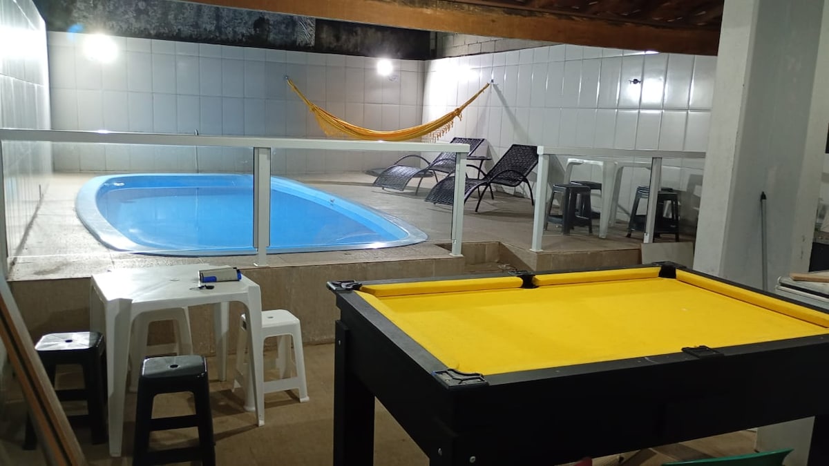 Ampio spazio e dispone di: *Piscina con cascata e idromassaggio *Wi-fi *TV *Area gourmet, barbecue, frigo, freezer, forno a microonde, piano cottura, friggitrice ad aria, utensili. *diversi giochi da tavolo. *padiglione. *camera climatizzata, due tralicci e un letto matrimoniale. *2 bagni. * Prato area ampla. *Giardino illuminato. *angolo per fare un fuoco e una griglia a pavimento, già con spiedo/griglia. *Parcheggio per tre auto * luogo tranquillo e sicuro, tutto con recinzione elettrica e monitoraggio .
