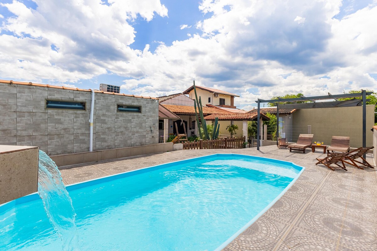 La nostra casa dispone di piscina e capanna con barbecue integrato esattamente per sfruttare al meglio lo spazio. Abbiamo un bagno esterno e 2 docce esterne che facilitano la vostra passeggiata intorno alla città. Internamente il nostro alloggio è super accogliente dove lasciamo tutto (dal caffè ai pasti in famiglia). Wi-fi disponibile in tutto lo spazio per una connessione ampia. Ampio cortile per bambini e posto auto per 2 auto. Quartiere Sta Terezinha, si trova a 1,3 km dalla spiaggia 🏖️