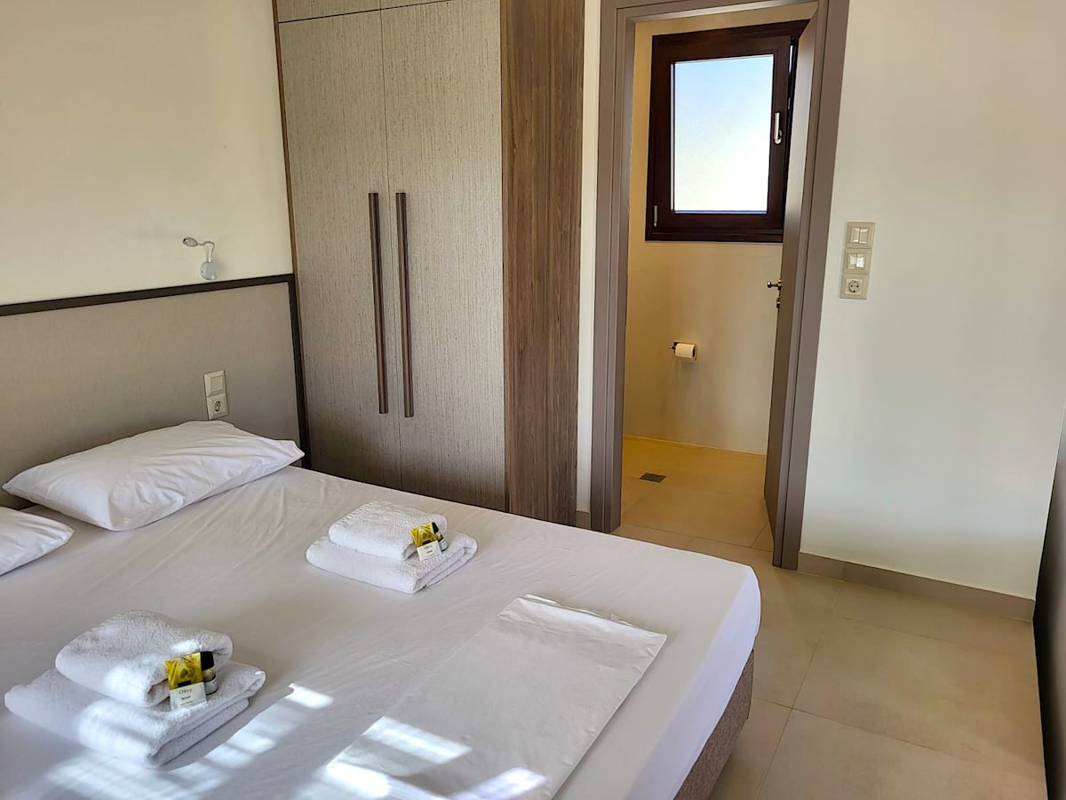 Benvenuto nella tua fetta personale di paradiso greco, a soli 50 metri dal mare, dove il giardino fiorisce con cactus amanti del sole e l'unico programma è il ritmo delle onde. Questo elegante bungalow con 2 camere da letto è perfetto per coppie, famiglie o amici che cercano non solo un alloggio, ma un luogo dove respirare. Con parcheggio privato, aria condizionata e WiFi affidabile, il comfort è garantito. A soli 1,2 km dall'autostrada per esplorare l'isola senza sforzo.