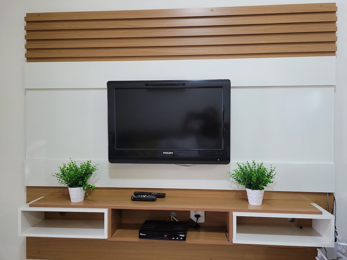 Accogliente appartamento con 2 camere da letto (una con bagno interno), 2 balconi e 2 bagni. Barbecue privato sul balcone. Un posto auto privato coperto per un'auto piccola o media. Cancello elettronico. È dotato di ascensore. Wi-Fi da 1 giga. Appartamento molto ben posizionato, colladinho in mare. Panetteria Tem, farmacia, supermercato, stazione di servizio, centri commerciali, banche, tutto è vicinissimo. Nei dintorni sono in corso lavori di costruzione.