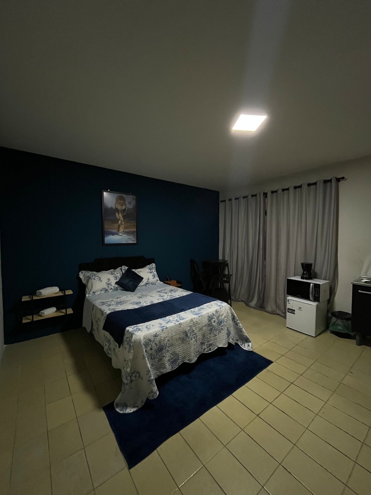 Abrace a simplicidade neste lugar tranquilo e bem-localizado. Estúdio com integração do quarto com a cozinha onde pode fazer um lanchinho assistindo televisão em banquetas altas com muito charme. Ideal para quem está a trabalho ou lazer. Próximo a mercado, farmácia, hospital. Bem no centro da cidade. Uma ótima opção para quem quer conhecer a nossa cidade.