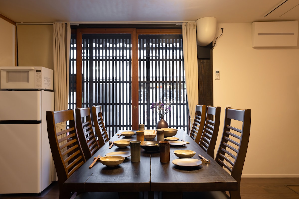La "Guest House Shin" si trova a una strada di distanza da Machiya-dori di Miyajima. Quando attraversi la tenda d'ingresso, ti accoglie un'elegante parete di bambù che ricorda un tenya di Kyoto, e un sentiero di pietra ti conduce al cortile.Il cortile ha anche un bel equilibrio di marmo bianco e muschio, che contribuisce all'atmosfera tranquilla.Le porte in vetro sono disposte in modo che il cortile possa essere visto dal soggiorno. L'edificio è accessibile solo agli ospiti attraverso il giardino, quindi non c'è bisogno di preoccuparsi di nessuno.Dall'esterno, sembra una normale casa privata, ma una volta entrati, l'atmosfera cambia, ed è questo che rende la locanda così affascinante.Ho sentito che il precedente proprietario aveva una lunga passione per il giardinaggio e una vasta gamma di hobby.Tuttavia, come ho detto all'inizio, non intendevo aprire una locanda, quindi non ci sono bagni (c'è una doccia).Tuttavia, puoi utilizzare la locanda vicina come bagno all'aperto.Il primo piano è un soggiorno, mentre il secondo piano ha due stanze adiacenti in stile giapponese che fungono da camere da letto, quindi fino a 6 persone possono soggiornare comodamente. Nel cortile, c'è una parola scritta con pietre bianche circondate da muschio.È stato creato in passato da un giardiniere con uno spirito giocoso, e da qui deriva il nome della locanda.Vogliono accogliere gli ospiti con tutto il cuore e sperano che possano trascorrere un soggiorno rilassante.