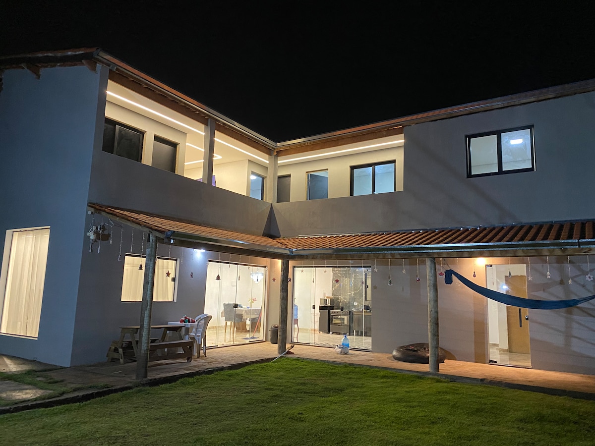 Casa Grande con quattro camere da letto , due camere, cucina attrezzata, più lavanderia e tre bagni in totale , grande piscina nuova con illuminazione , ampia area per prendere il sole , campo da calcio Gramado, zona barbecue coperta con freezer , casa di finitura semplice posto meraviglioso per chi ama il contatto con la natura , enorme area con alberi da frutto, tutto bene tra famiglia e amici , pendolarismo asfaltato in condominio