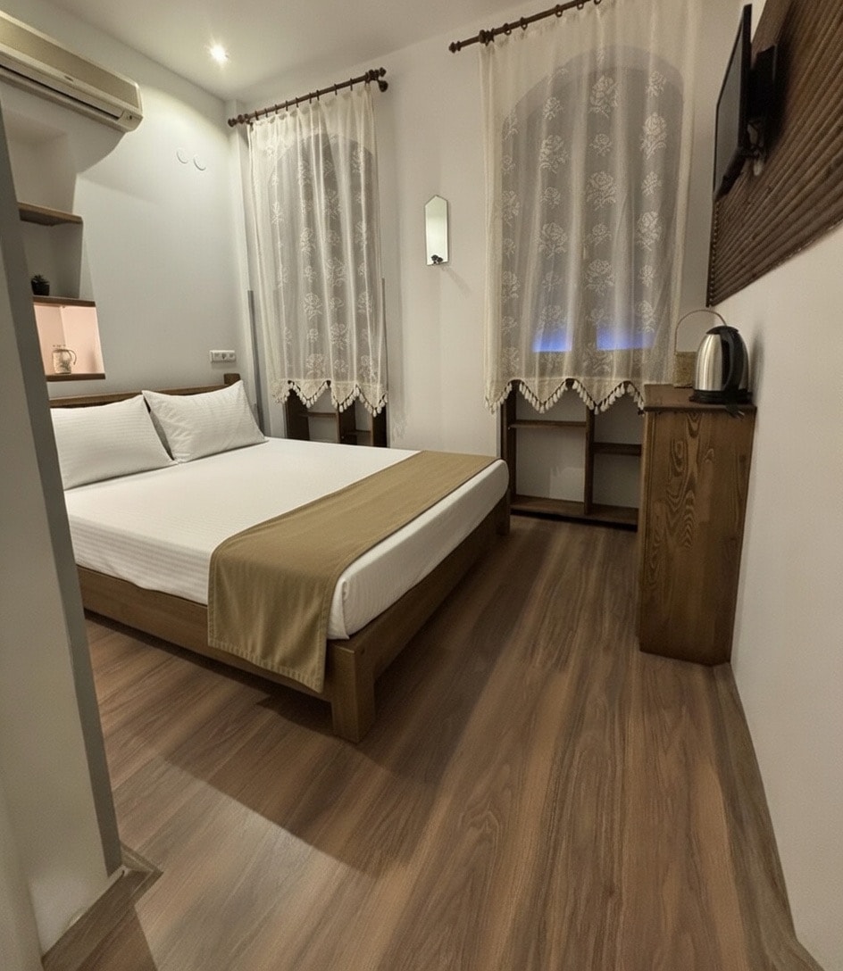 La nostra storica casa greca, costruita nel 1874, è stata rivista con tocchi moderni e resa confortevole per i nostri ospiti. Offre un'esperienza di soggiorno in un'atmosfera dove si respira l'esperienza della casa greca dalle camere da letto alle scale, dalla cucina al soggiorno. La sala storica della nostra casa ti aspetta con la trama del sito urbano di Cunda, la sagoma della chiesa di Taksiyarhis e la vista sull'isola di Tavuk.