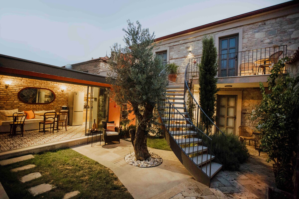 Our villa floor(independent entry) and a big private garden, We are here for you! We are the best choice, If you want a couple of days to live the culture, nature and history of Aegan and İzmir. We can honestly say that we have the perfect location in Urla even if in İzmir!! Available for 6(4+2) people(1 double bed, 2 single beds, 2 canape beds). Suitable for friends and families! Restorared in 2021. All items are new!