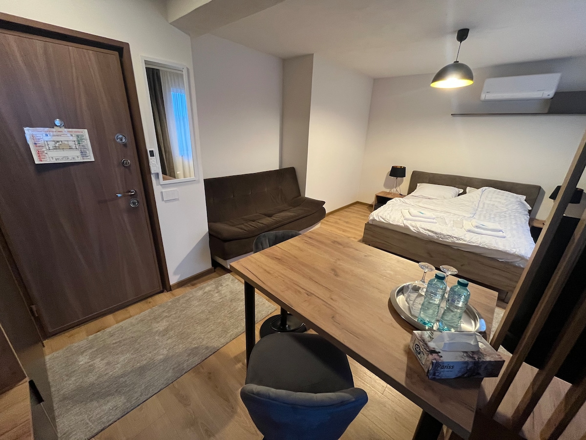 Art Studio Bnb vi invita in un posto molto speciale!!! È il luogo in cui puoi goderti un ambiente piacevole e rilassante quando sei nella Cittadella di Banie. Goditi un'esperienza elegante e moderna in questo monolocale situato a soli 10 minuti a piedi dal centro storico di Craiova.