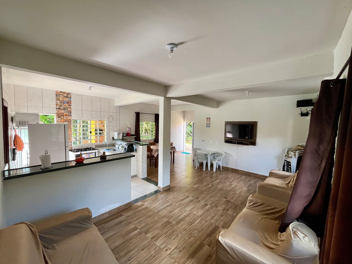 La casa può ospitare fino a 14 persone con comfort. Suite con balcone, cucina completa con piano cottura a gas, frigo, congelatore, forno a microonde e tutti gli utensili da cucina. Oltre a un'ampia sala da pranzo. Letto, biancheria da letto, da tavolo e da bagno e coperte sono inclusi. (Accettiamo animali educati). La casa è un'ottima opzione per portare un gruppo di amici e familiari. Posizione tranquilla con una vista privilegiata sul fiume Cipó, un luogo ideale per riposare, fare barbecue e prendere una piscina.