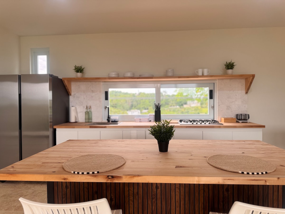 ✨Beautiful, Modern and Cozy Apartment Near Rincón (12 minutes from the plaza)🏝 with mountain and ocean view perfect for your stay. Its open-concept design combines the living room 🛋, kitchen 🍽, and bedroom 🛏 into one spacious, comfortable, and modern space. You can stay for two to four people, since the living room sofa can be converted into a bed. 🌟Best of all: a private terrace with views of the mountains and the sea 🌊.
