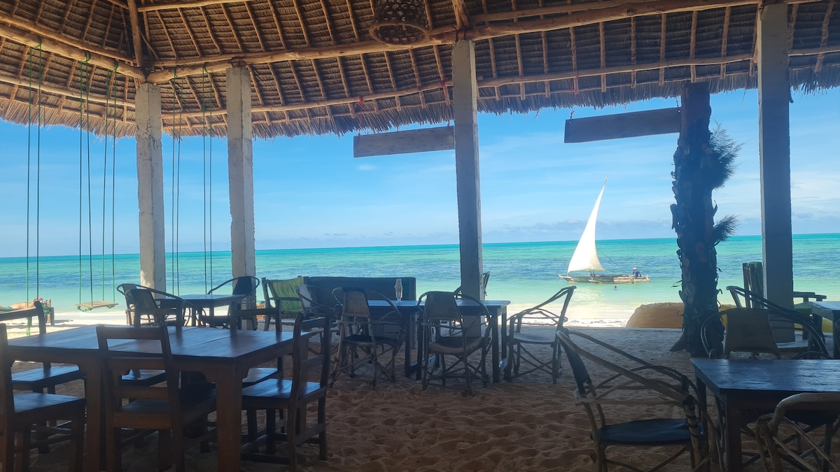 Accogliente appartamento a 2 min a piedi dalla spiaggia con letto matrimoniale, zanzariera, frigo, ventilatore da tetto e bagno privato di recente ristrutturazione (doccia 3 pezzi con acqua CALDA, non sempre disponibile sull'isola). Dispone di una cucina privata completamente attrezzata, dove è possibile cucinare e preparare frullati freschi (negozio di alimentari nelle vicinanze), e di una veranda ombreggiata decorata con conchiglie, perfetta per il relax. Questo potrebbe essere un posto perfetto per gli amanti della spiaggia, della luna di miele, delle famiglie e di chi cerca un posto tranquillo a Zanzibar.