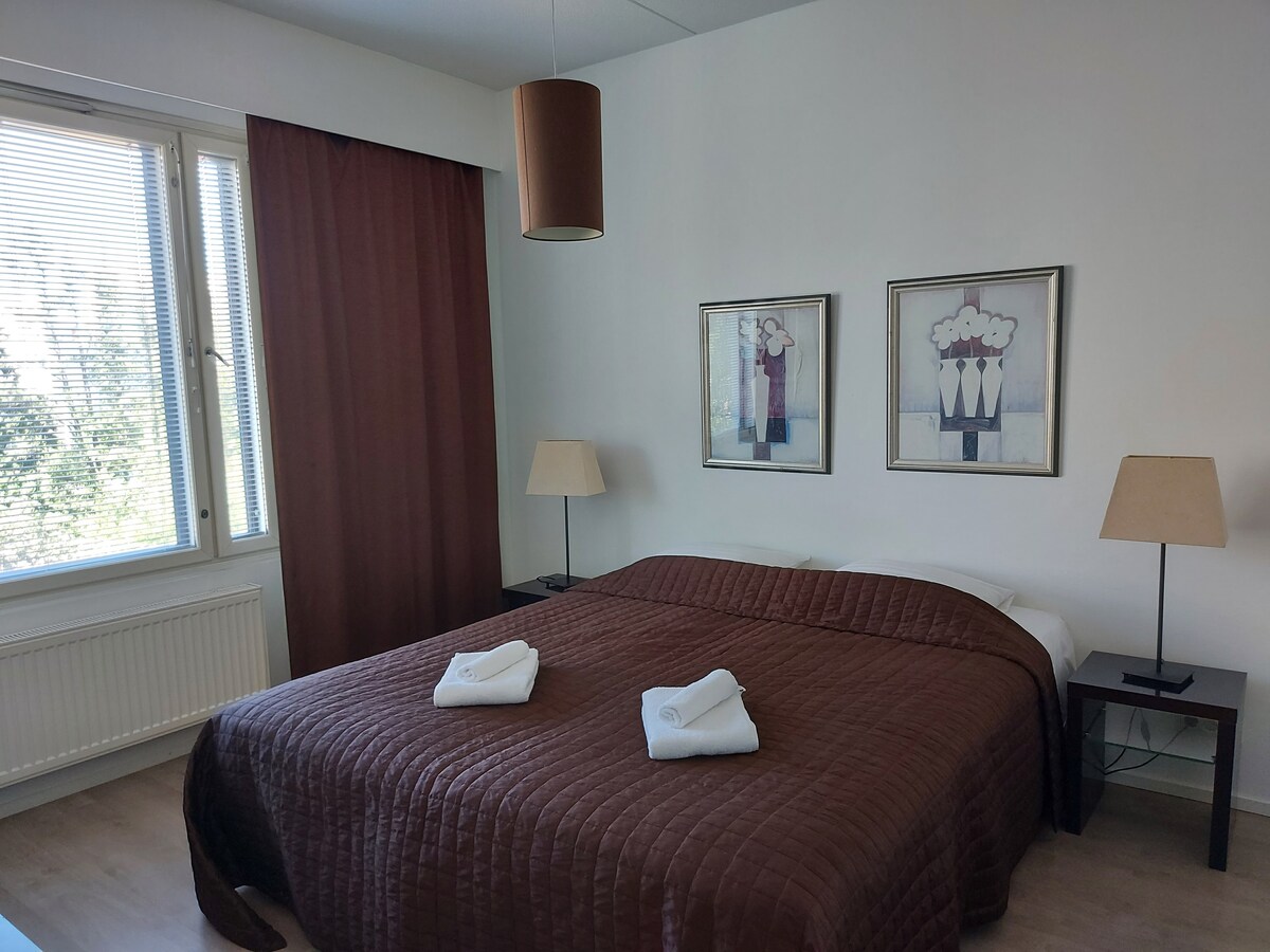 Nauti elämän helppoudesta tässä rauhallisessa, keskeisellä paikalla sijaitsevassa kohteessa. Asunto on kauppakeskusten vieressä, mukavan lähellä kaikkia palveluja. Sinne on helppo tulla ja sieltä on helppo lähteä, bussilla, junalla ja autolla. Oma pysäköintipaikka oven vieressä. Asunto on hissitalon ylimmässä kerroksessa, rauhallisella sisäpihan puolella ja siinä on tilava parveke. Wifin lisäksi tarjolla on Chromecast ja iso 4K-tv. Parivuoteen voi jakaa kahdeksi sängyksi ja vuodesohva on 140.