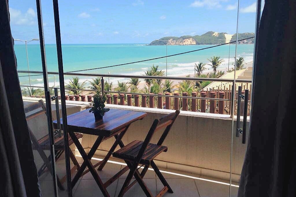 3 bedroom penthouse with air conditioning and two bathrooms in front of Ponta Negra beach, extraordinary view, giant balcony, steps away from the best restaurants in Natal/RN. Building with elevator, 24-hour Front desk, pool and parking in a private and uncovered location. breakfast included.