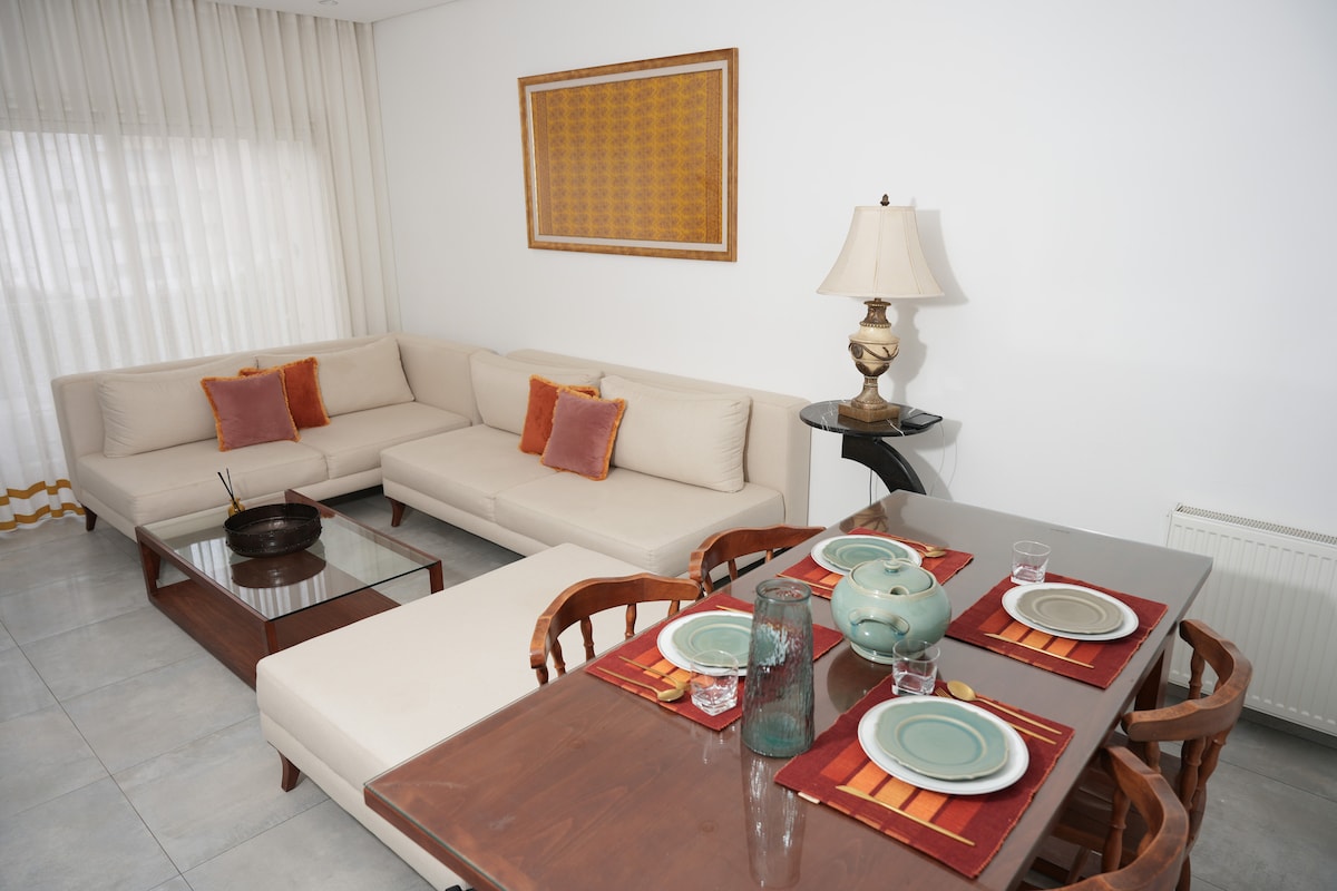 Casa incantevole e accogliente in una zona residenziale e tranquilla di Tunisi. Goditi una vista panoramica di Grand Tunis dal balcone. Lo spazio è ampio e luminoso, con arredi eleganti che riflettono le mie passioni. Ogni area emana un'atmosfera accogliente, creando un ambiente accogliente in cui i dettagli scelti con cura sono evidenziati dalla luce naturale. L'atmosfera si integra perfettamente con i miei interessi, offrendo agli ospiti un'esperienza di soggiorno unica.